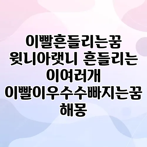 이빨이 흔들리는 꿈은 많은 사람들에게 다양한 의미를 지니고 있습니다. 이 꿈은 종종 개인의 불안감이나 변화에 대한 반응으로 해석되며, 특히 윗니와 아랫니가 모두 흔들리는 상황이라면 더 깊은 의미를 가질 수 있습니다. 이빨 꿈에 대해 함께 탐구해보는 시간을 가져보겠습니다. 꿈에서 이빨이 빠지거나 흔들리는 상황은 심리적 불안을 나타내기도 하고, 인생의 전환점이나 중요한 결정을 앞두고 있을 때 나타나기도 합니다. 다양한 해몽을 통해 꿈이 우리에게 어떤 메시지를 전달하고자 하는지를 알아보도록 하겠습니다.